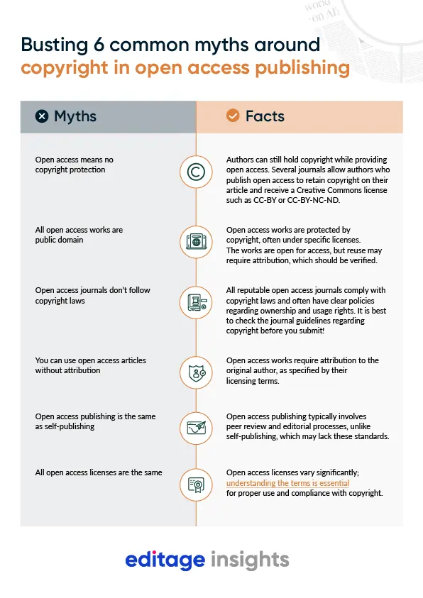 There are several myths about copyright and open access that can create confusion among researchers, publishers, and the general public. Here we debunk 8 common myths around copyright and open access. Scroll through them below or download the handy PDF!
