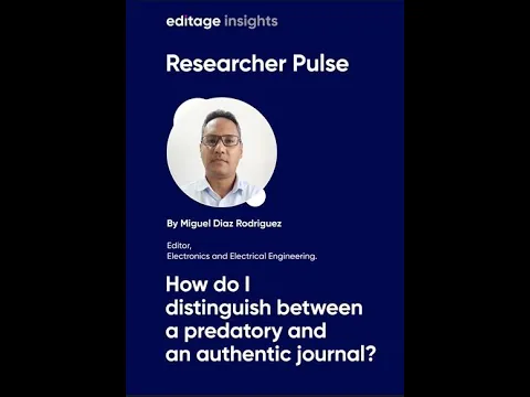 Hi, I’m Miguel, a researcher from the engineering field. In this video, I share my thoughts on distinguishing between predatory and authentic journals. Have you ever received an email from an unknown editorial office asking you to submit a paper to them? Well, authentic journals usually don’t ask authors to submit a paper. Authentic journals typically don’t charge fees for the peer review process. Predatory journals instead may request payment upfront even before the manuscript is reviewed. Pay attention to the organization sponsoring the journal. For example, relevant associations and respective federations. Check whether the journal is indexed in a database with a genuine impact factor. Predatory journals may not be indexed in databases measuring impact factor Authentic journal follows a peer review process that takes time. So, be aware of journals promising that the peer review process will be completed in a few days or weeks. And finally, ask senior researchers for their insights and experiences. Thank you very much.